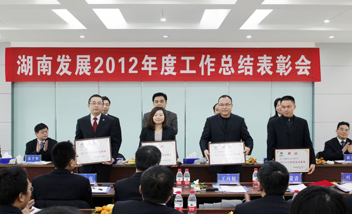 總裁劉健總結了2012年度公司工作完成情況、取得的經驗和存在的問題,報告了2013年度主要工作思路。副總裁兼財務總監(jiān)張潔宣讀了《關于表彰2012年度先進集體和優(yōu)秀個人的決定》,公司領導對獲獎集體和個人進行了頒獎。